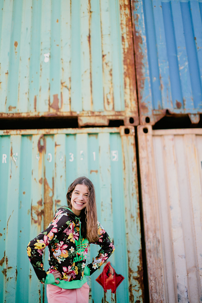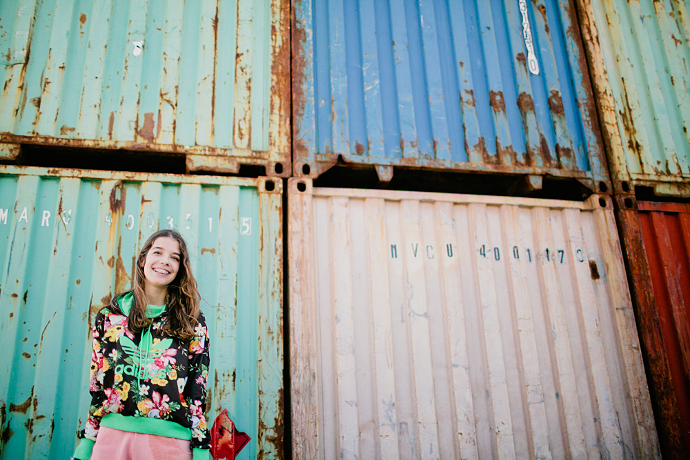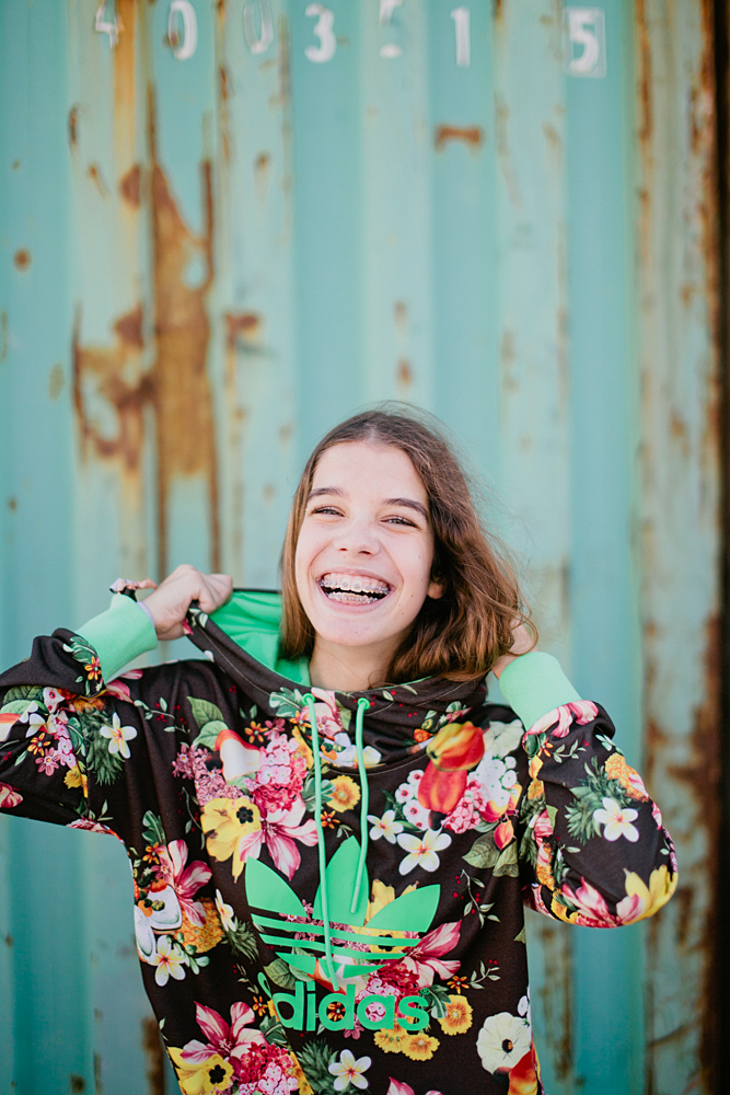 As calças têm um padrão tropa e ficaram muito bem inseridas neste ambiente verde e completamente descontraído.