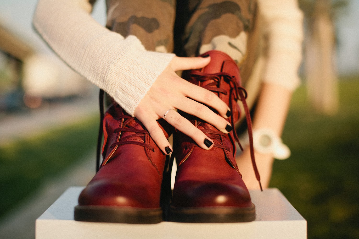 Estas botas são o acessório indispensável a usar num estilo como este! A sua cor, bordeaux, dá um bloco de cor para que os tons nude e verde não se apoderem de um look pouco vivo. Mais do que isso, e apesar da cor, apetece usar e abusar delas nos dias mais frios (e não só).